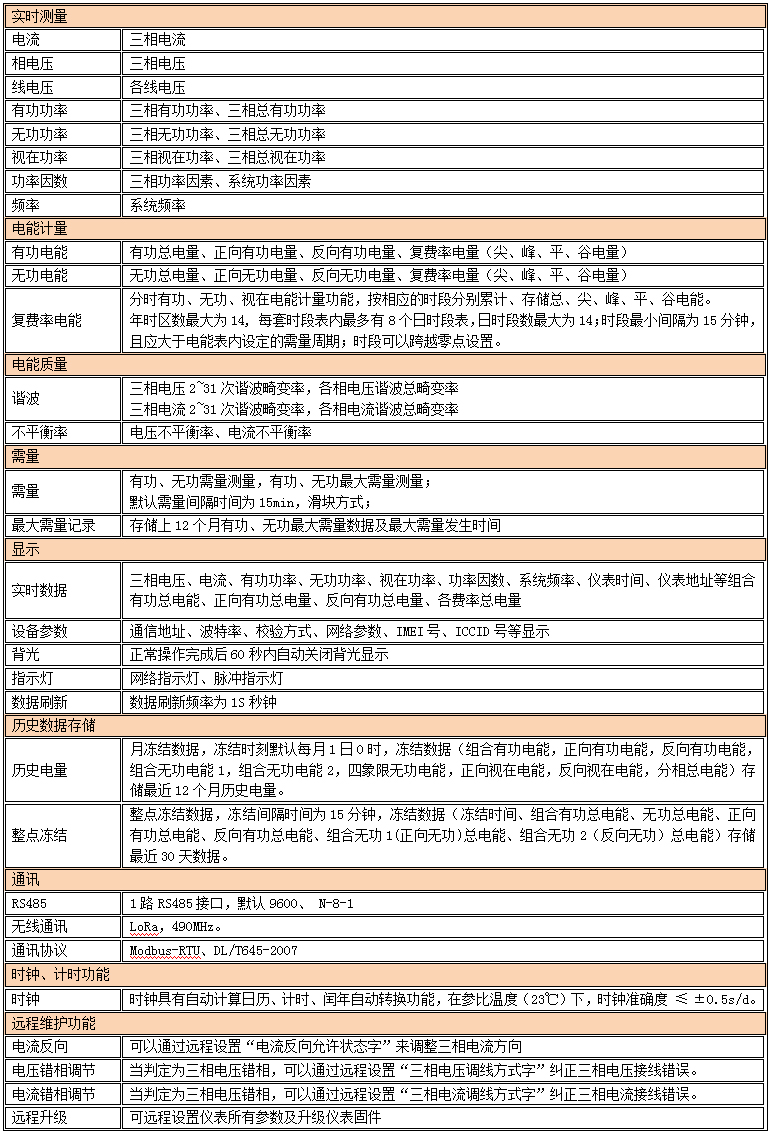 2、支持RS485,和LoRa通信方式,支持Modbus RTU和DLT 645通信協議;