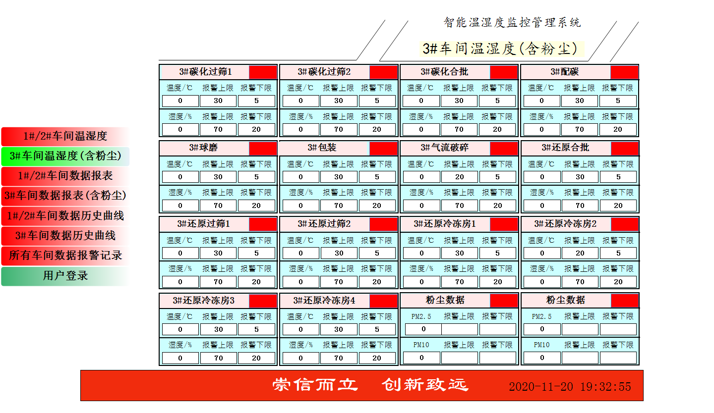 通過(guò)無(wú)線(Lora)傳輸,采集車(chē)間環(huán)境溫濕度和粉塵的數(shù)據(jù)并上傳到服務(wù)器電腦上,在服務(wù)器電腦上的平臺(tái)軟件上展示: