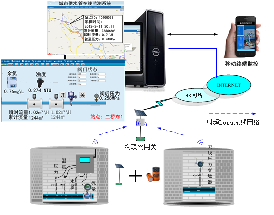 深圳信立科技供水管網監測系統主要應用于自來水供水管網、城市景觀綠化帶供水管網、消防用水管網等管網在線監控,實時監控管網壓力、水質(PH值、余氯、濁度、電導率等)、用水流量等數據,并形成有效的在線監測系統。